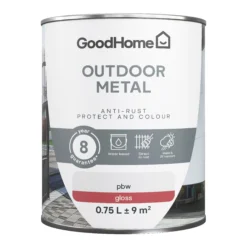 GoodHome Outdoor White Gloss Exterior Metal Paint, 750ml Tin