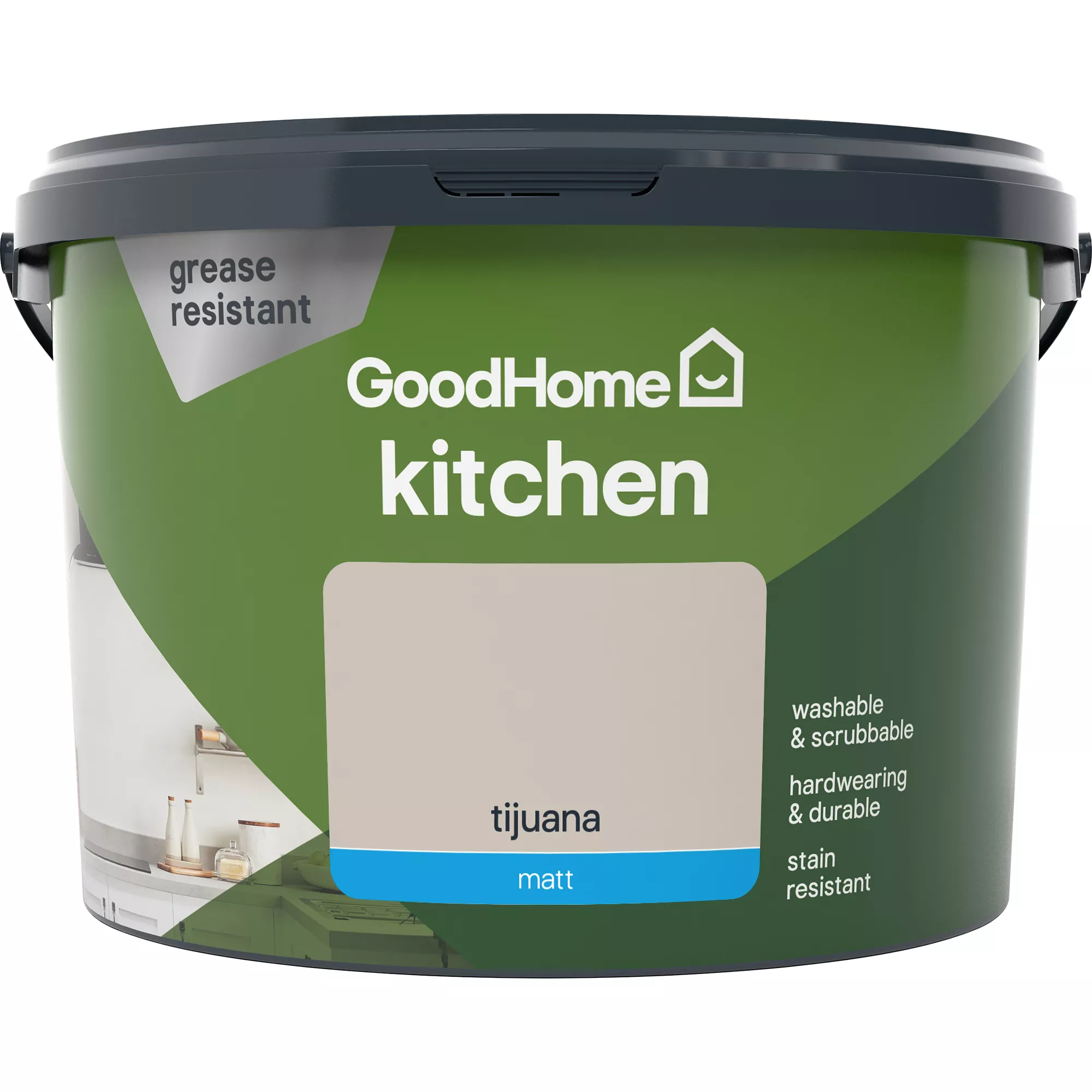 A popular GoodHome interior matt emulsion paint that is suitable for use on wall & ceiling, making it a great choice to give your home a refresh. Tijuana is a wonderful shade of brown that will add a contemporary feel to your design. After application, this emulsion paint will accomplish a perfectly matt surface that will look good as new for a long time. This 2.5L size will cover up to 30 m² on average. You can use a brush or roller to apply an even layer. It will dry quickly between coats meaning you can recoat it in 2-4 hours. Washable and resistant to stains, it’s perfect to use in kitchens. As well as looking brilliant, this water-based paint is safe for use in your home. It contains minimal VOCs and it has low odour levels, making it a safe choice for you and your environment.