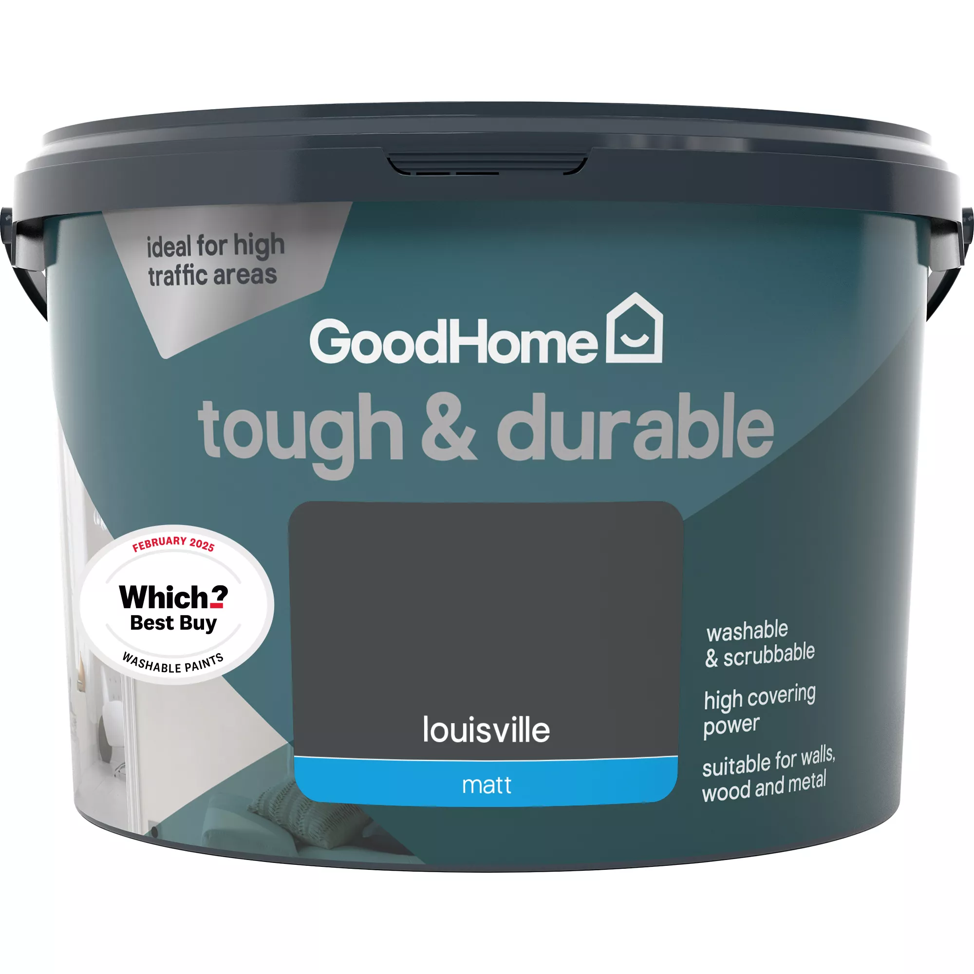 - This GoodHome Tough & Durable matt paint has a stain resistant finish and is extremely hard wearing for longer lasting colour. It is washable, scrubbable and repels liquids so splashes can be wiped off with ease, keeping your painted surfaces looking new for longer.